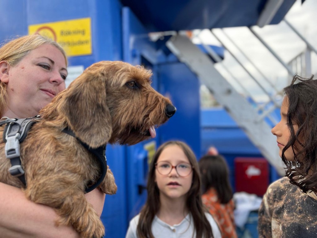 Sophie on the ferry home from MarstrandFemale with good proportions, strong head, could have been a little nobler, good shoulders, neck and back in standing, a little loose, moving, well-developed body, deep chest, could have a little more ground clearance, good bone structure, good legs & hindquarters, good step, good fur quality.