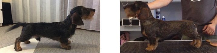 Arioso stems from a kaninchen x miniature wire pairing and Liina from a miniature x standard pairing. Both parents are miniature wires and we hope that the puppies will also be miniatures.