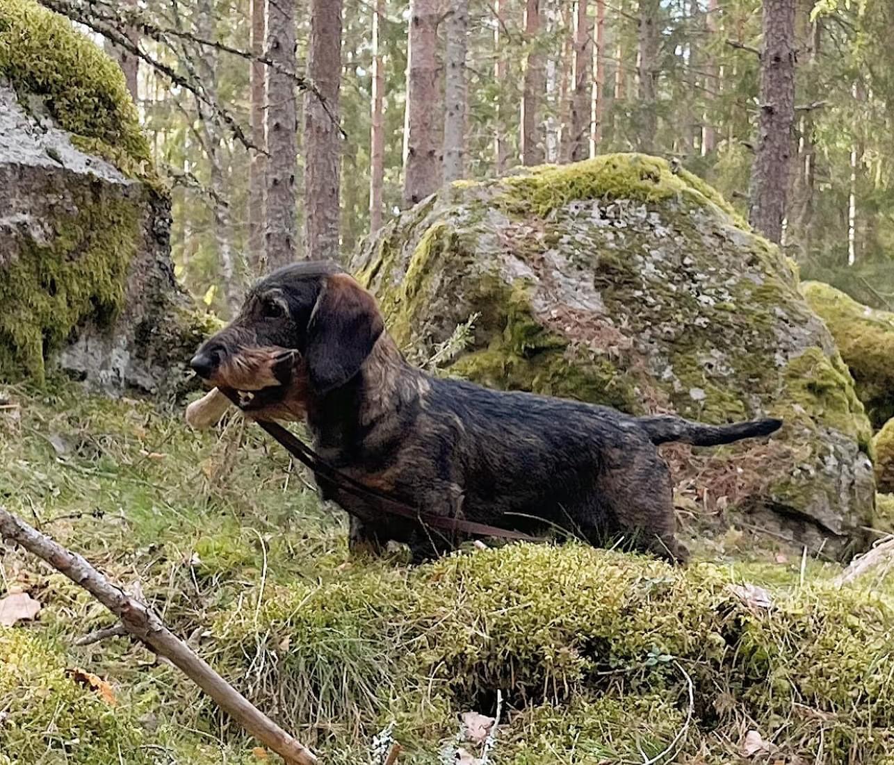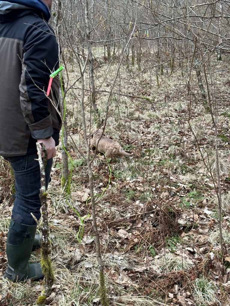 Sophie and John went blood tracking this morning and passed the viltspår anlagsprov (aptitude test) for blood tracking. I especially like the comment from the judge: “A lively, willing to track female that worked excellently.”🏆🐾 First official results from our first homebred girl.❤️