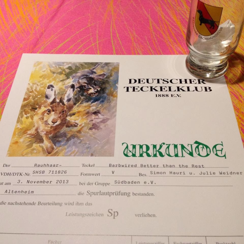 Barbwired Better than the Rest– Sfk, Sp, IT-SchwhK/40 (1st prize), BHP-G (TS), BPH (SE), WaT, GRYTAnlagsprov Kval2, 3x1st prize viltspår, 1xHP-SEVCH